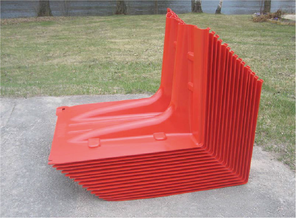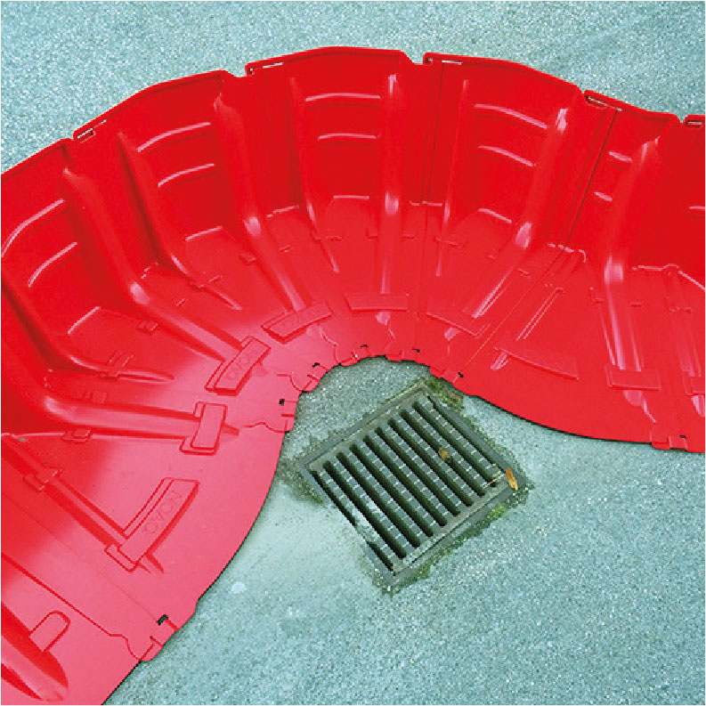 Comprende una serie de secciones infladas (tubos), que se conectan entre sí con cremalleras formando un dique.